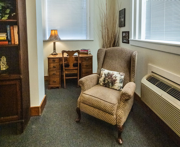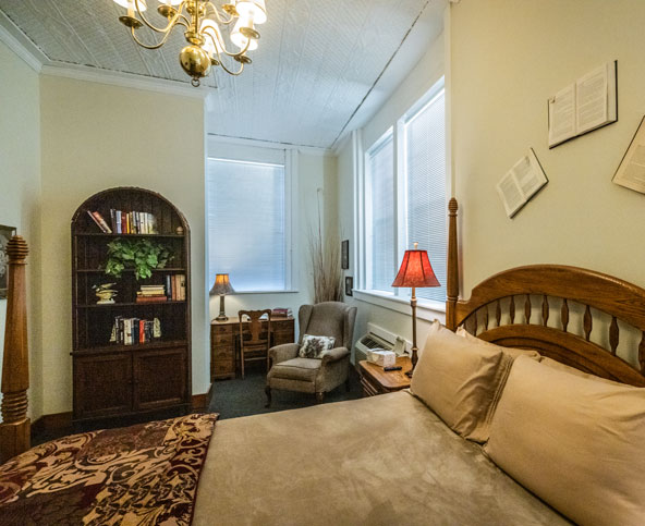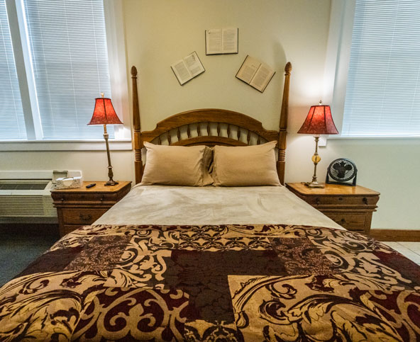 Ground floor room with private bath, flat screen TV, high speed internet connectivity, small refrigerator and hairdryer. Queen size bed provides a great night’s rest.
